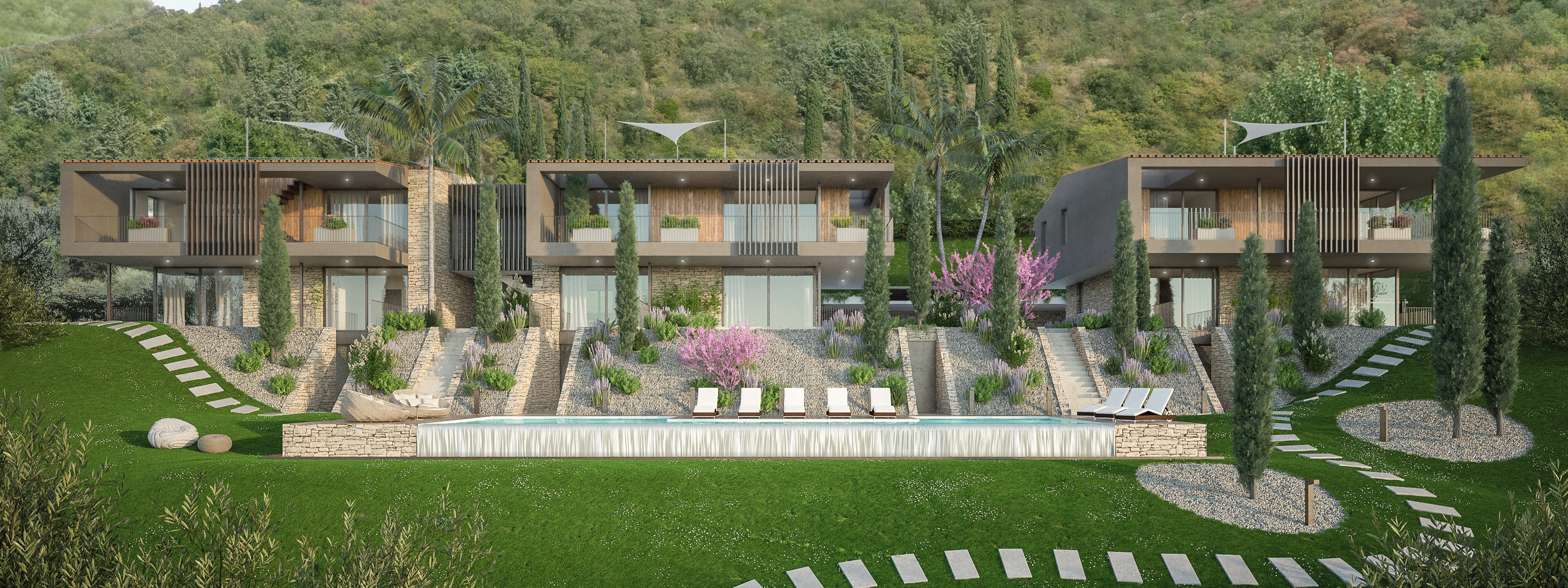 Eingebettet in die sanften Hügel rund um den Gardasee entsteht ein exklusives Wohnprojekt inmitten einer besonderen Landschaft. An einem Ort, wo Licht und Natur in stiller Harmonie wirken, wird ein nicht erhaltenswertes Bestandsgebäude rückgebaut und durch drei eigenständige Häuser mit insgesamt sechs eleganten Wohneinheiten ersetzt. Die Zufahrt erfolgt über eine ruhige Nebenstraße, was Privatsphäre und Abgeschiedenheit gewährleistet. Die interne Erschließung liegt dezent auf der Rückseite des Grundstücks und bewahrt so den freien Blick auf den Gardasee – ein zentrales Element des Wohngefühls. Die Architektur nimmt Bezug auf die regionale Bauweise: Satteldächer, Naturstein, erdige Putztöne – modern umgesetzt mit klaren Linien und hochwertigen Materialien. So entsteht eine Balance zwischen Tradition und Gegenwart. Jeder Eingriff respektiert die Landschaft und ihren Charakter. Ein Highlight ist der Infinity-Pool, dessen Wasserlinie mit dem Horizont verschmilzt – ein Ort der Ruhe, eingebettet zwischen Natur, Architektur und Emotion.